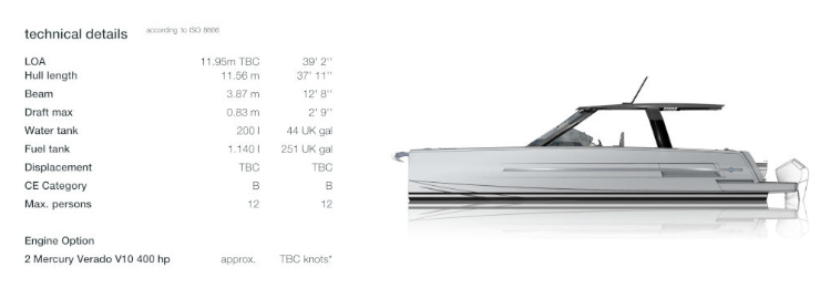 The FJORD 39 XP sets new standards in power yacht design with its innovative equipment, breathtaking aesthetics, and powerful outboard engines. Its striking design blends timeless elegance with modern accents, featuring clean lines, high-quality materials, and thoughtful details. The spacious deck offers sun loungers and an inviting lounge area for a relaxing journey. Inside, the cabin is a luxurious retreat with a separate shower and a comfortable double bed, combining luxury with functionality.